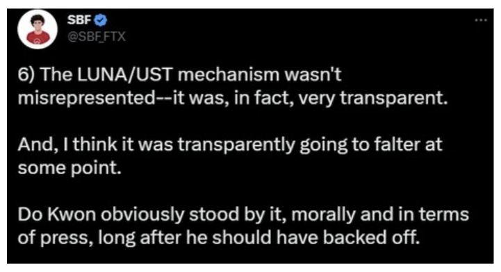 此外,作为预示,Do Kwon 在 2021 年发推文称,类似乔治·索罗斯的“黑色星期三”袭击来摧毁 UST 是“愚蠢的”。