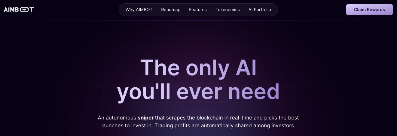 AIMBOT 定位为一个狙击机器人,专门设计用于在流动性添加到链时购买新推出的代币。其主要目标是在新推出的代币的前两个块内执行买入订单,具体条件下有可能将购买窗口延长到四个块。AIMBOT 代币持有者可以无需人工干预地被动参与交易活动。交易产生的利润会定期分发给 AIMBOT 代币持有者。