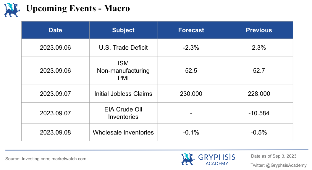 过去一周,加密货币市场经历了波动不定的情况,主要是由于 Grayscale 的新闻以及所有申请者 Spot 比特币 ETF 决定的推迟。市场最初上涨,但随后下跌,BTC 和 ETH 都低于其周开盘价收盘。与此相反,股票市场正在回升,SPX 和 NAQ 连续第二周呈现出正面表现。展望未来,下周值得关注的重要事件包括美国贸易逆差、ISM 非制造业 PMI、初请失业金人数、EIA 原油库存以及批发库存的数据发布。