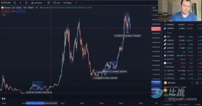 他在 X 平台写道。「当前市场与 2019-2020 年的调整非常相似,这是此次调整最有可能发生的情况,调整持续了 5 个月,最大跌幅为 46% 」。