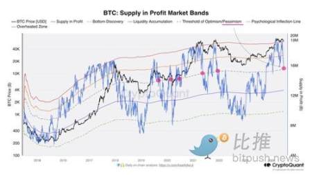 在另一个图表中,流通中 BTC 的利润占比下降了 18% ,Adler 表示这与持币者整体的「悲观」情绪相对应。