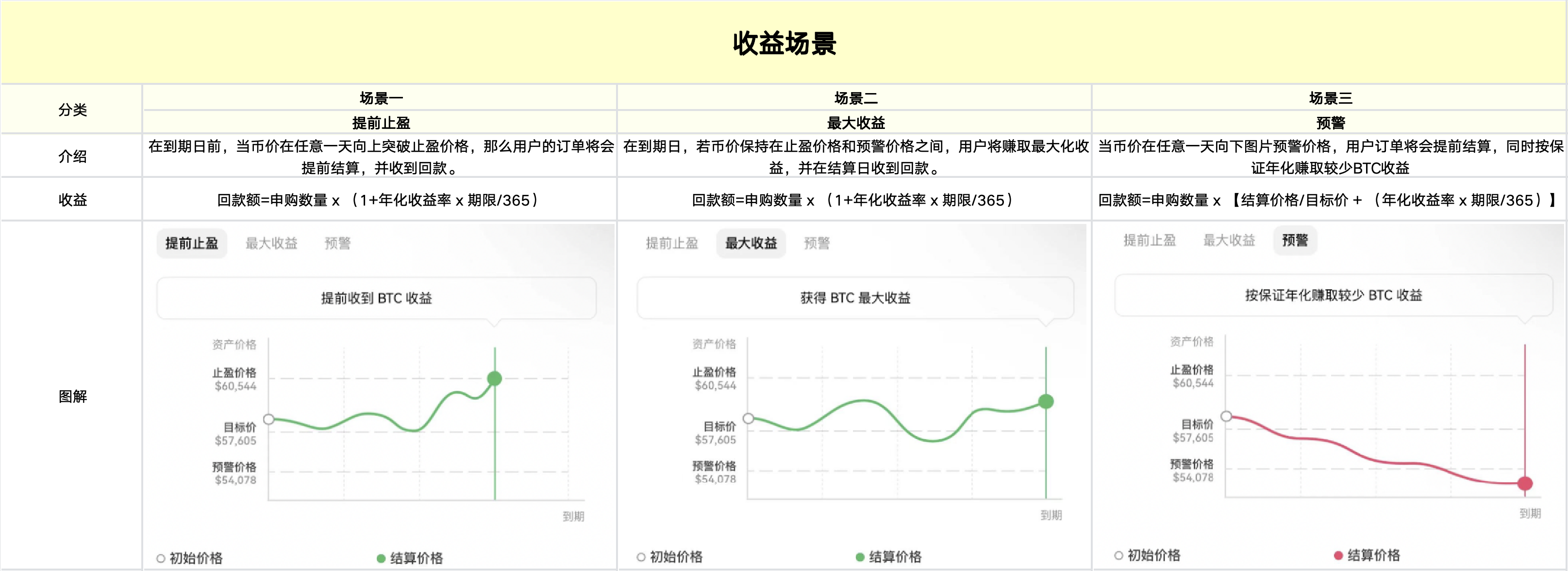 总的来看,在场景一和场景二都可以保证用户本金的前提下,赚取收益,但是在场景三中,用户的回款额有可能低于申购数量,并且保证年化收益可能无法弥补损失。同时,极端情况下,结算价格也有可能远低于预警价格。
