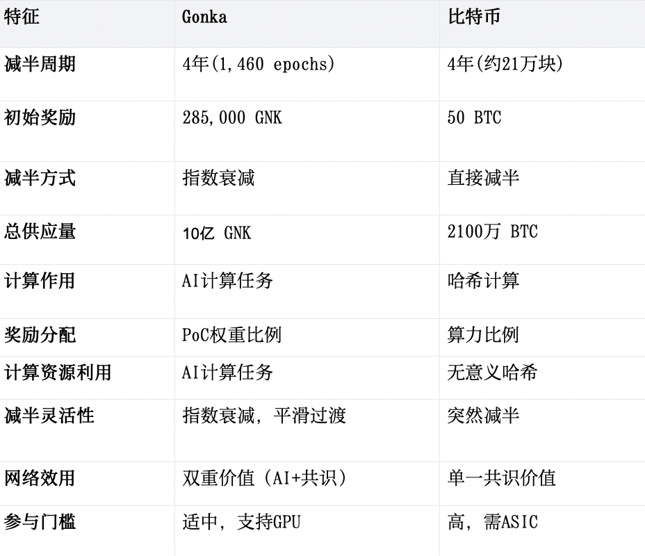 Gonka采用逐步减半机制来控制代币通胀并激励早期参与者。该机制通过定期减少奖励发放量,确保代币供应量的可控性和网络的长期可持续发展。减半机制适用于Reward Coins的新铸造奖励,遵循类似比特币的经济模型但结合了AI计算网络的特点。