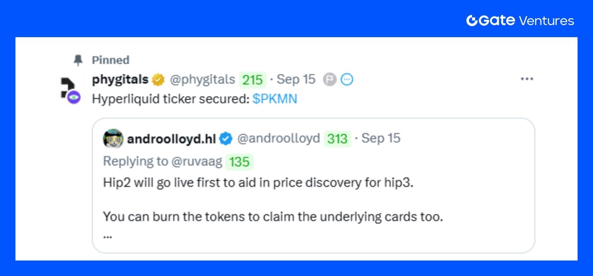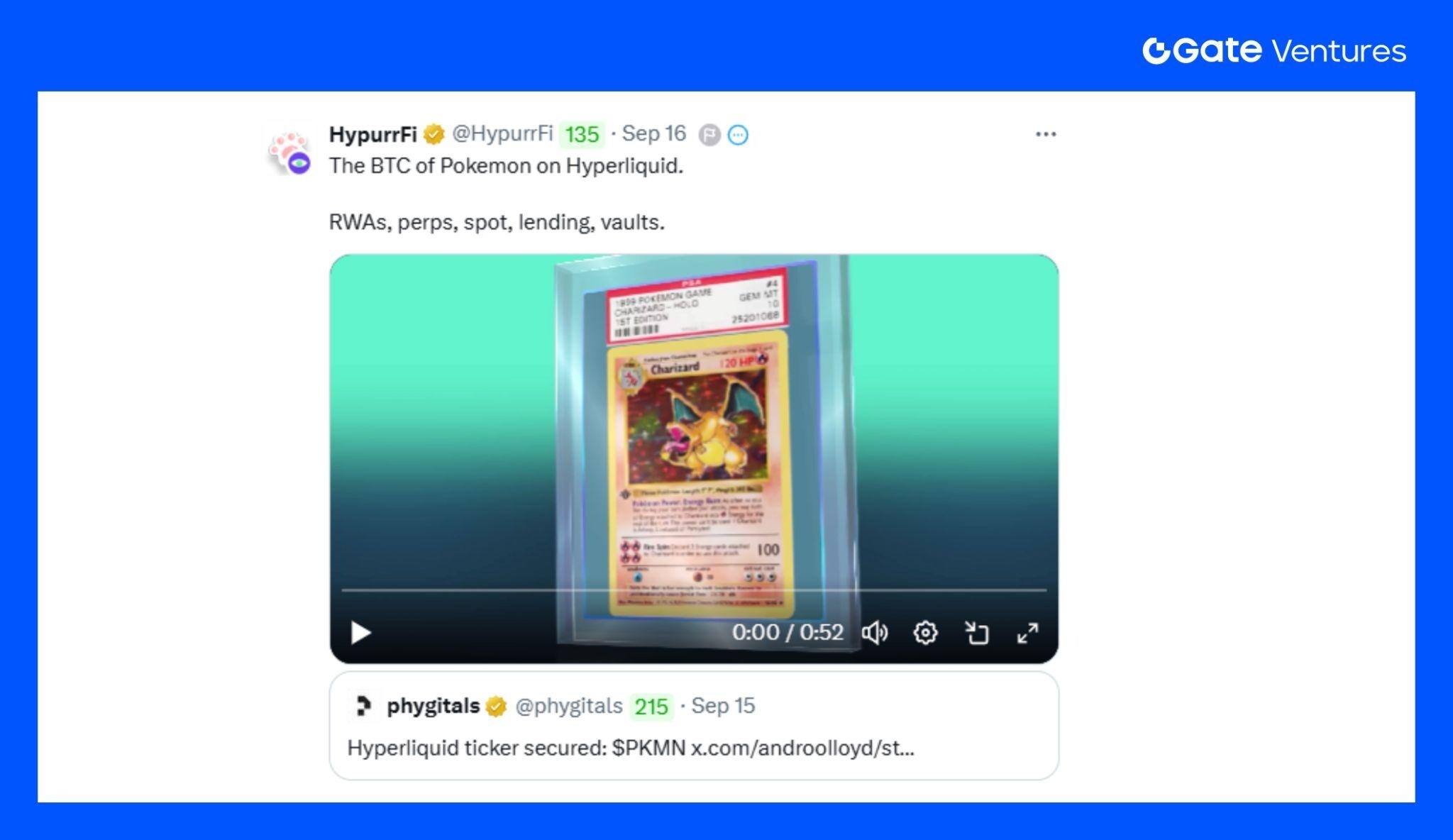 同时,项目还在 X 上与 HL 生态的借贷协议 HypurrFi 展开联动,暗示未来将围绕宝可梦卡推出 借贷、永续合约等 DeFi 服务。这不仅凸显了宝可梦卡在链上 RWA 的价值属性,也展示了其与 DeFi 世界融合的潜力。