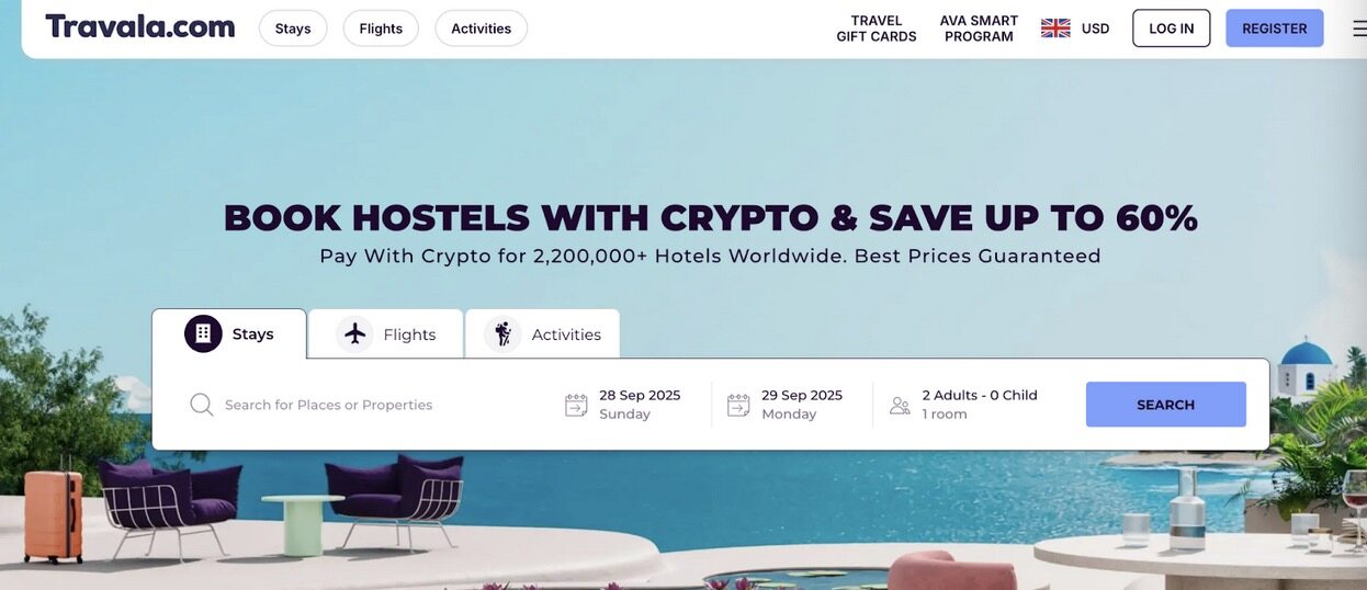 通过加密友好的旅行预定网站,你能用 USDT、USDC 等稳定币预订全球 600+ 航空公司和 200 万家酒店,