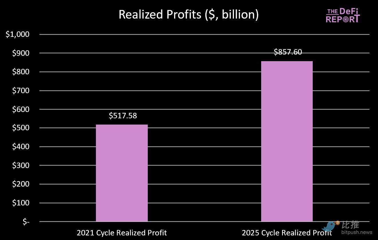 根据 Glassnode 数据,本周期 BTC 投资者已实现 8,570 亿美元利润——较 2021 年周期高出 65%。