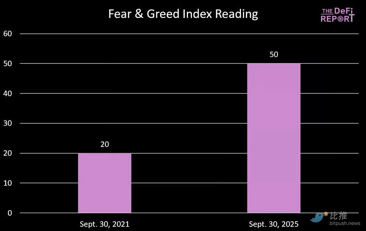如果您认为当前市场紧张不安,那么 2021 年同期市场更加恐慌。事实上,2021 年 9 月我们处于极度恐惧状态。当时 BTC 刚刚回调 20%,跌至 4.3 万美元,随后在接下来五周内上涨至 6.6 万美元顶部(涨幅 53%)。