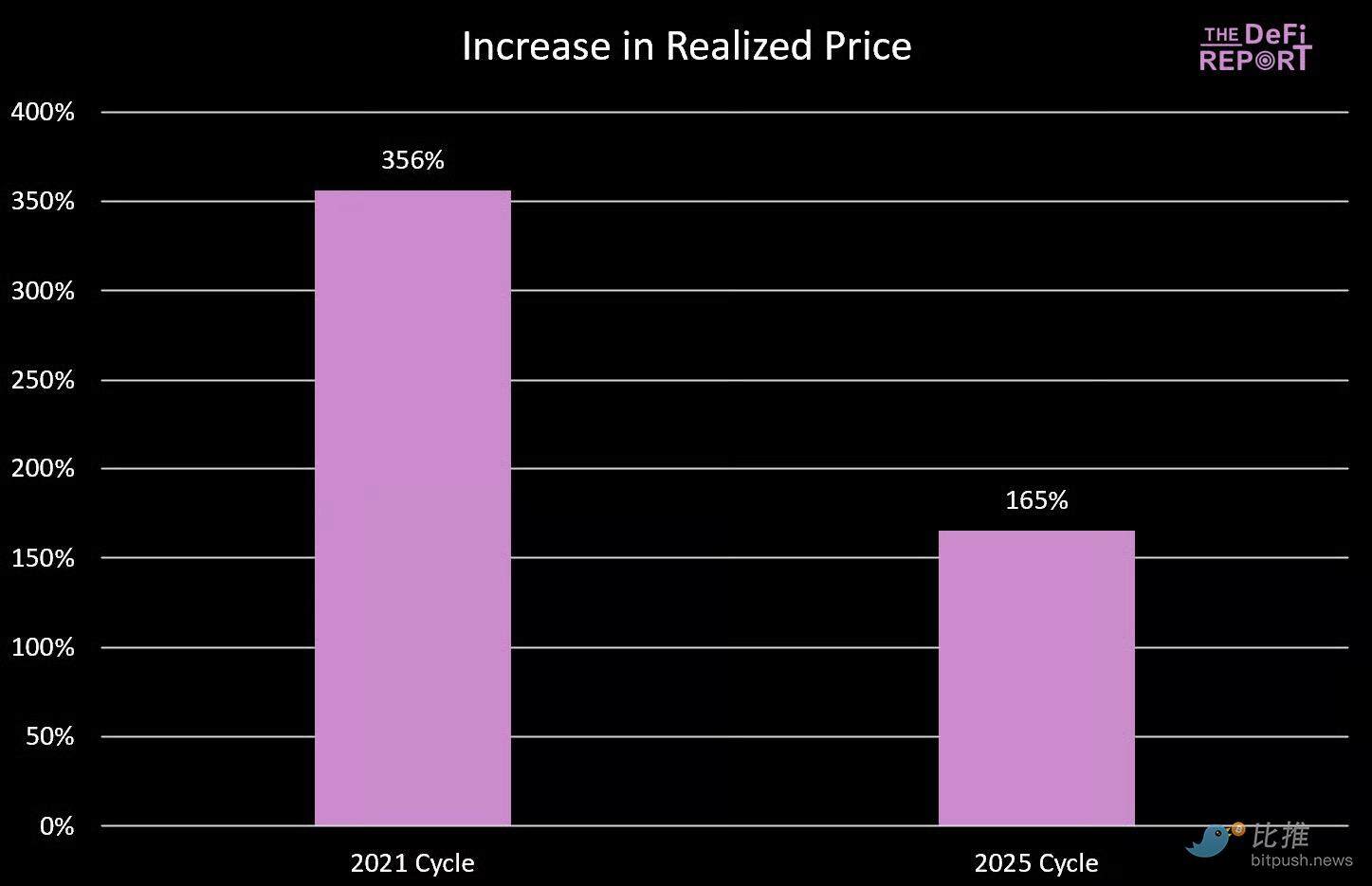 与 200 周移动平均线类似,比特币在熊市中往往回归其已实现价格,而周期通常在已实现价格达到与前周期高点一致的水平时见顶。