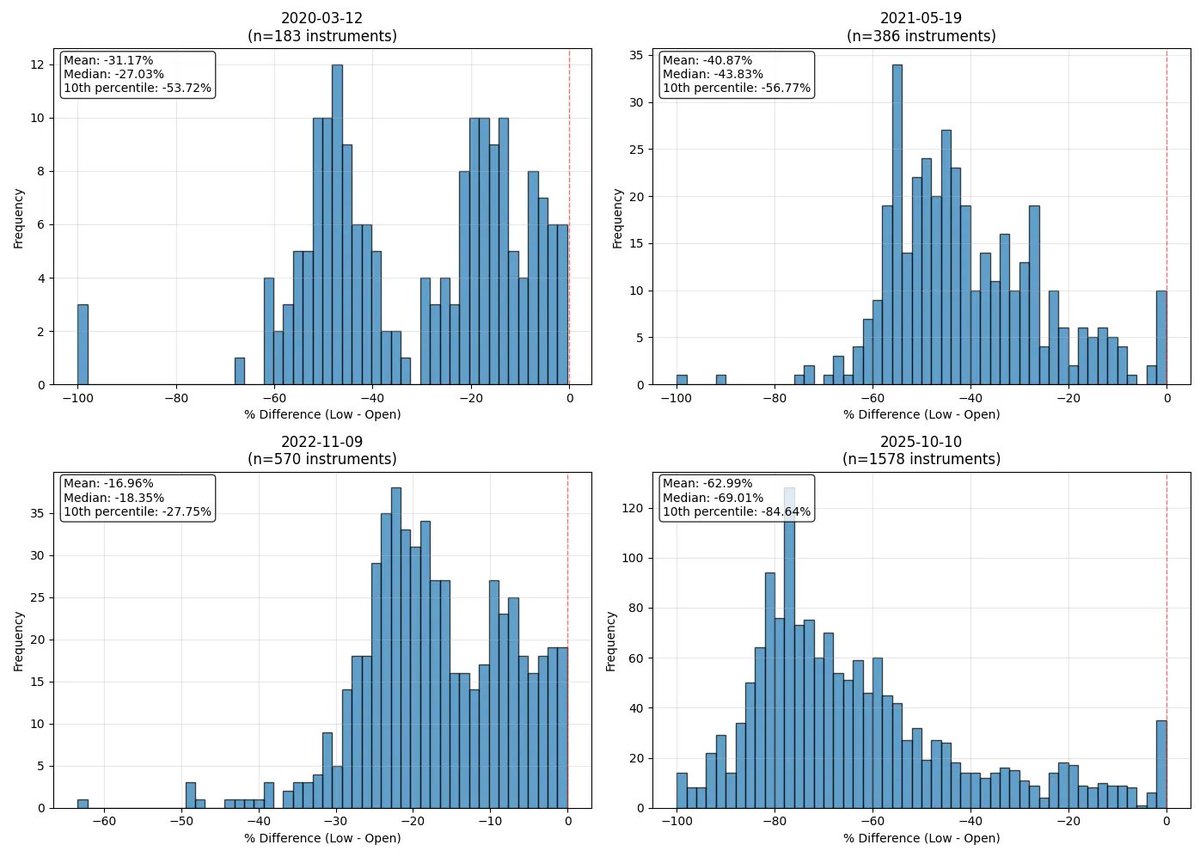 我选取了加密史上四个最疯狂的交易日(当然,早年也有诸多乱象,但本文聚焦“现代加密时代”)。我对这些日子做了同样的分析。结论是——10 月 10 日是我所见过最猛烈的一次抛售。