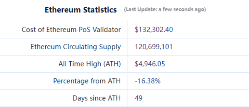 ETHUSD :现价 3,456 美元,历史最高价 4,946 美元,距最高价跌幅约 16.38%。