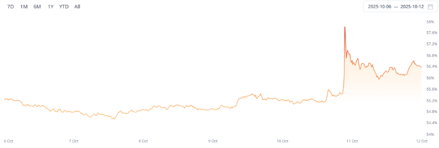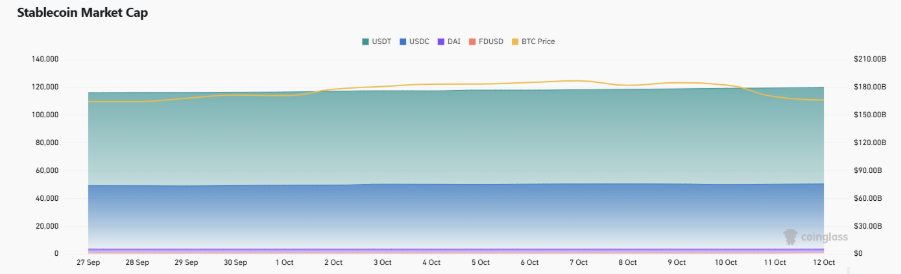 截止至发稿,比特币市值为 2.29 万亿美元,占加密货币总市值的 57.2%。与此同时,稳定币市值为 3,100 亿美元,占加密货币总市值的 7.73%。