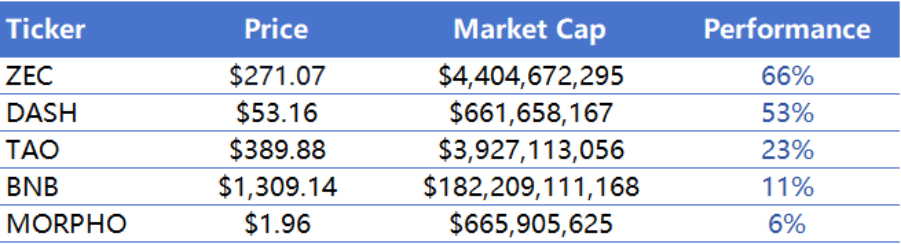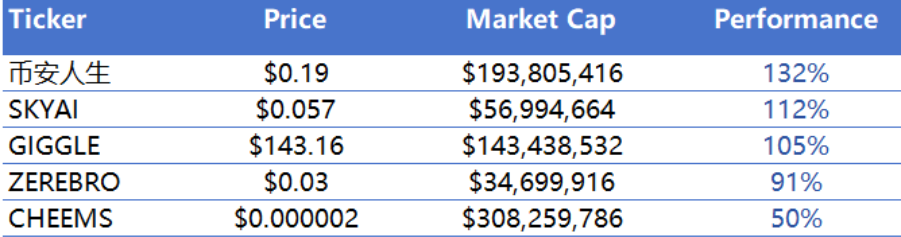 1. 本周涨幅前五的 VC 币和 Meme 币