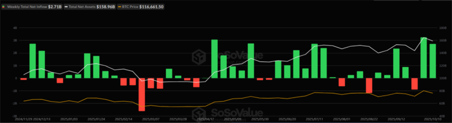 截止至发稿,美国比特币现货 ETF 累计总净流入约 627.7 亿美元,本周净流入 27.1 亿美元;美国以太坊现货 ETF 累计总净流入约 149.1 亿美元,本周净流入 4.88 亿美元。
