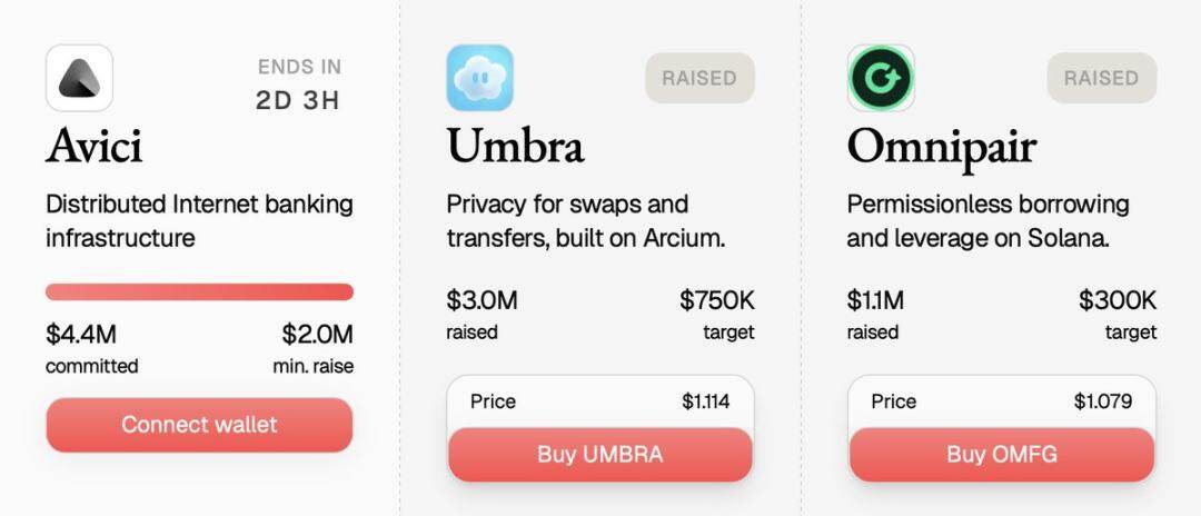 最具代表性的案例是 Solana 隐私协议 Umbra。Umbra 的发售吸引了超 1 万名参与者,承诺资金据称突破 1.5 亿美元,发售页面还实时展示大额配额数据。亲眼目睹这种透明分发,仿佛能窥见更结构化的 ICO 未来—— 透明、链上化、政策可控。