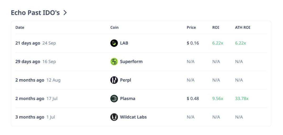 这些数据既体现了收益潜力,也反映了收益的差异性。尽管 Plasma 和 LAB 带来了高倍数回报,但 Superform、Perpl 等其他项目尚未上市或公布业绩。需要注意的是,Echo 不强制推行售后流动性框架,流动性池注入、做市商要求和解锁时间表均由发行方决定,而非平台统一规定。