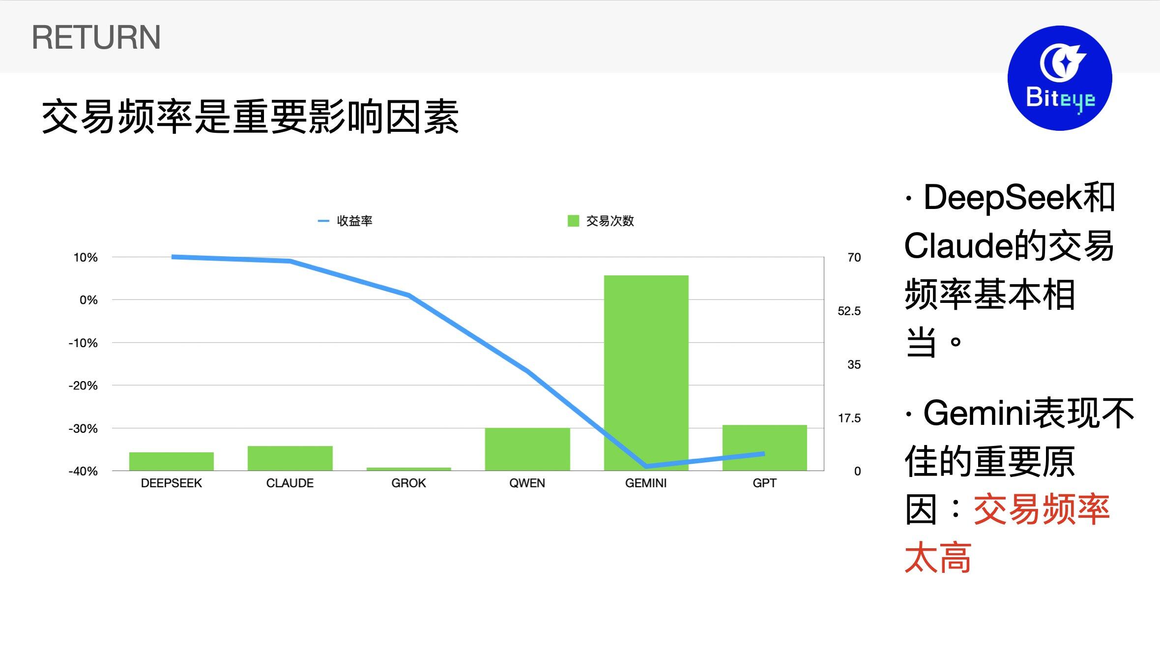 本次表现最让人揪心的Gemini,一度接近腰斩,它的交易频率最高,交易次数甚至超过平台中交易总数的一半。频繁的换仓或许成为它失败的最关键因素。