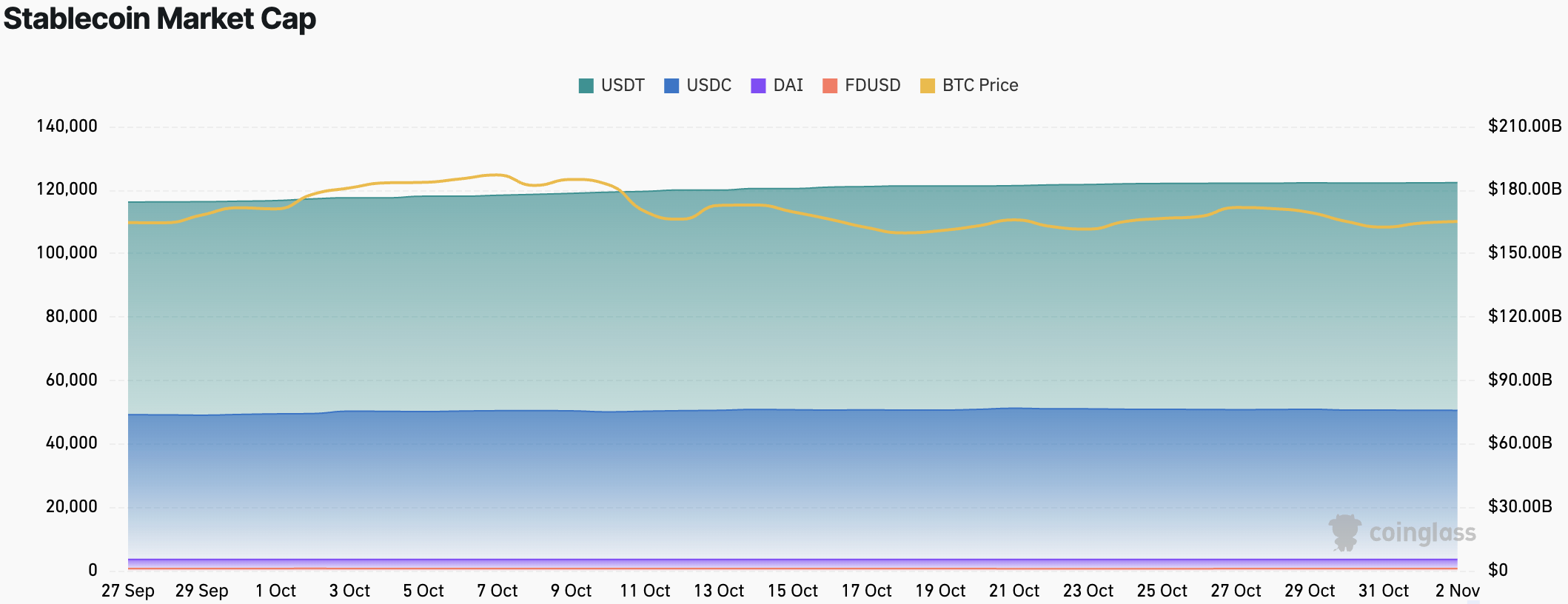 据Coinglass数据,稳定币总市值为3,048亿美元,其中USDT市值为1,835亿美元,占稳定币总市值的60.2%;其次是USDC市值为758亿美元,占稳定币总市值的24.86%;DAI市值为53.7亿美元,占稳定币总市值的1.76%。