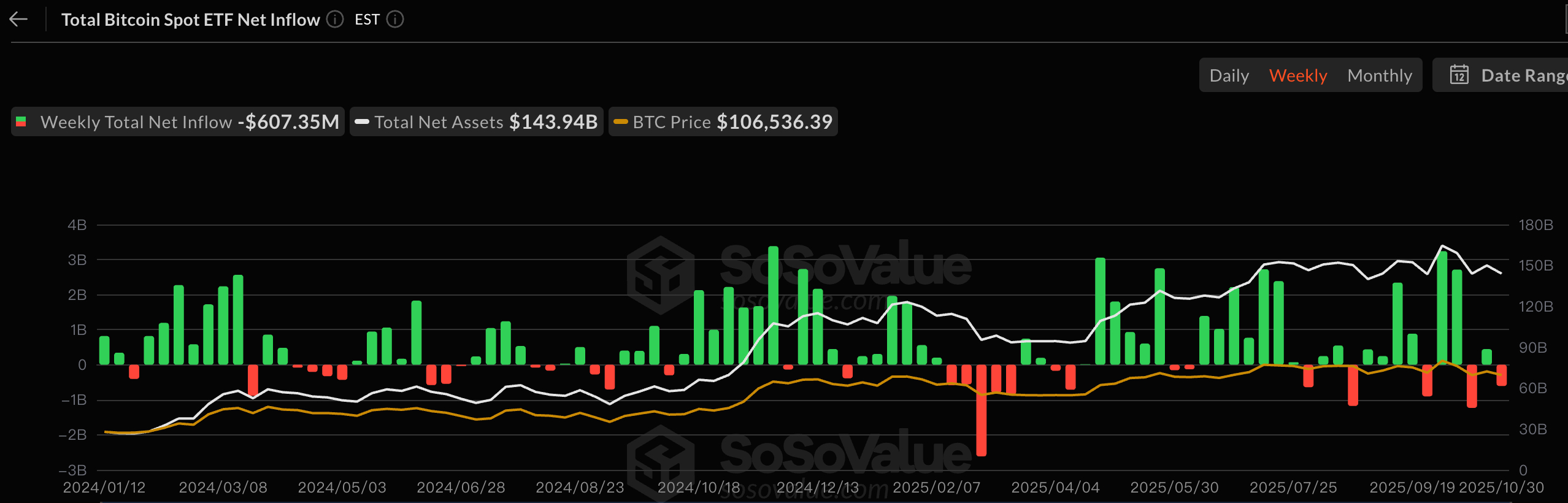 截止至发稿,美国比特币现货ETF累计总净流入约611.9亿美元,本周净流出6.07亿美元;美国以太坊现货ETF累计总净流入约143.7亿美元,本周净流入1.14亿美元。