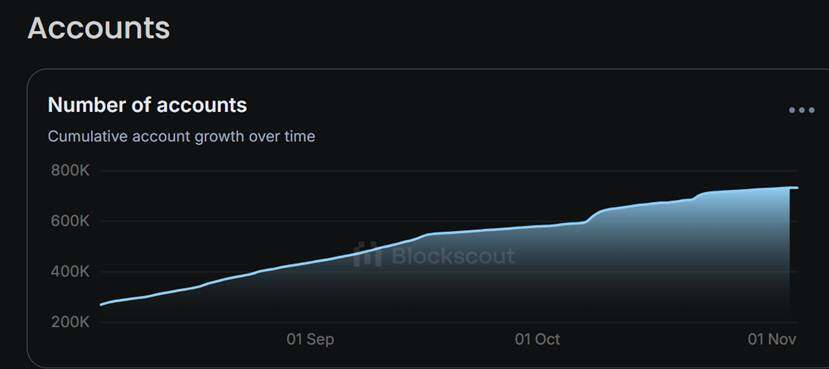 在10月27日至11月2日期间,JuChain维持了稳健的网络信心,反映出市场对其基础设施长期价值的认可。全网累计交易总量达到331万笔,其中$JU相关交易达105万笔;日均活跃账户数为3.28万个,新创建账户达1.22万个;同期共有160个新合约部署在主网上。