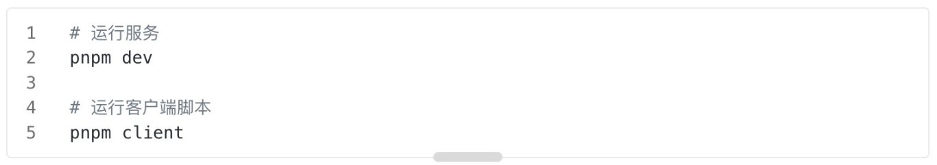 如果需要运行项目,需要创建一个 .env 并填写所需的环境变量,然后在终端启动服务器并运行客户端代码: