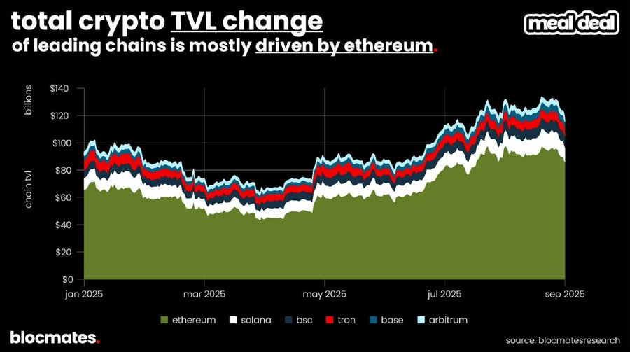 就用户规模而言,Binance Smart Chain 在三季度凭借与 CZ 关联的永续 DEX——Aster——夺走了最多的注意力。大量用户要么在初夏选择离场,要么从 Base 与 Solana 迁移至 BSC。