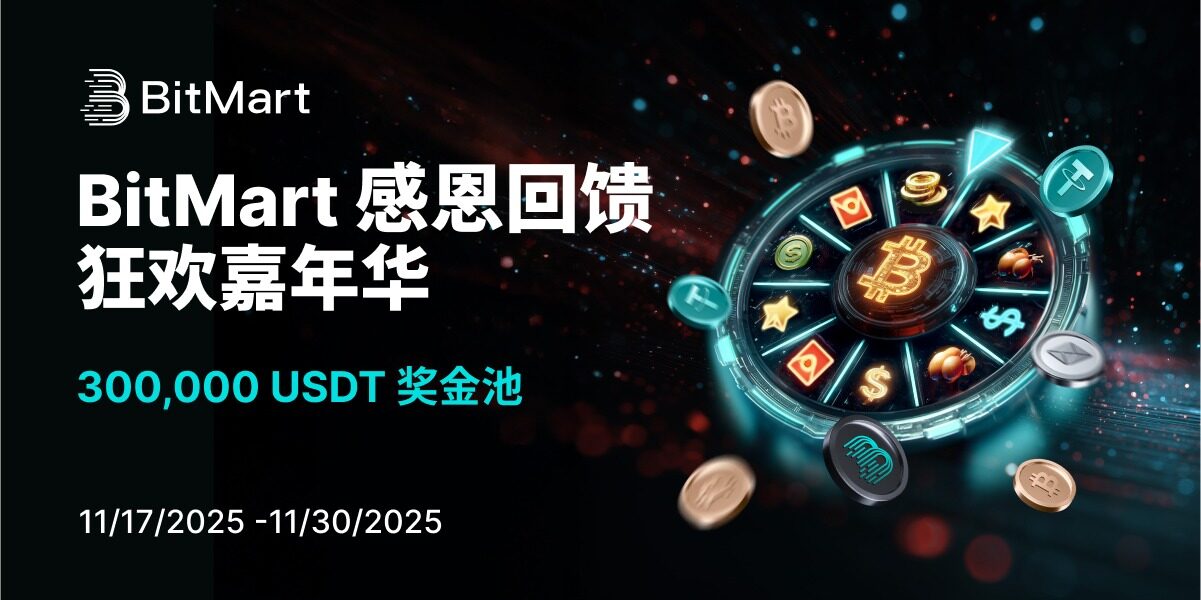 在全球黑色星期五消费热潮与感恩节季到来之际,为回馈全球用户,BitMart 正式推出年度活动“感恩回馈 · 狂欢嘉年华”。活动以“转盘抽奖、全航道任务体系和节日加码”为核心,奖品丰富,奖池高达300,000USDT,包括 Cybertruck、1 BTC、iPhone 17 Pro Max(1TB)等。