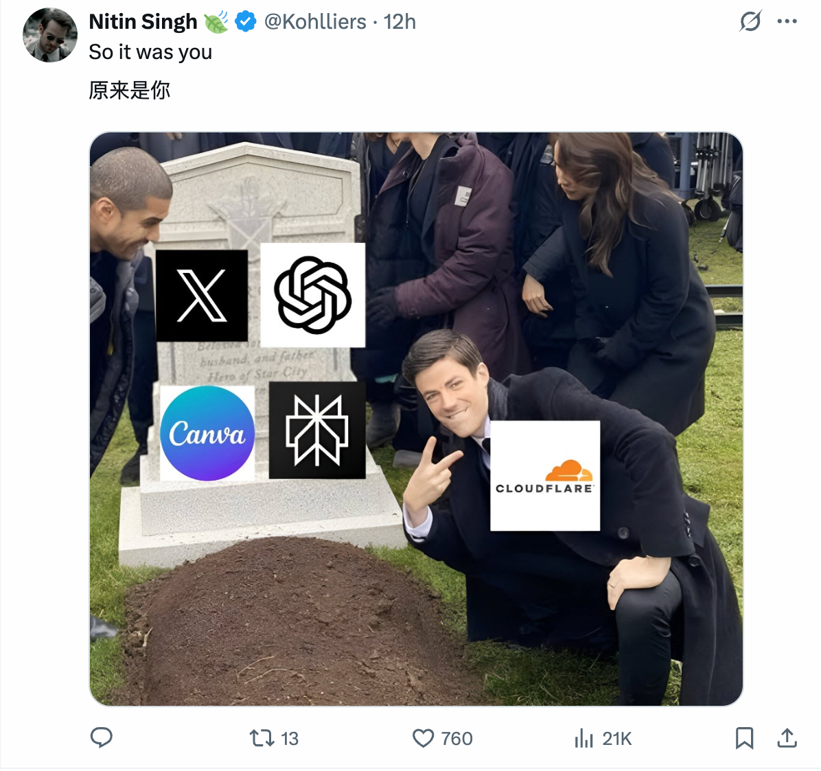 Meme 虽迟但到:Cloudflare 新入职员工背锅?只是网友玩梗