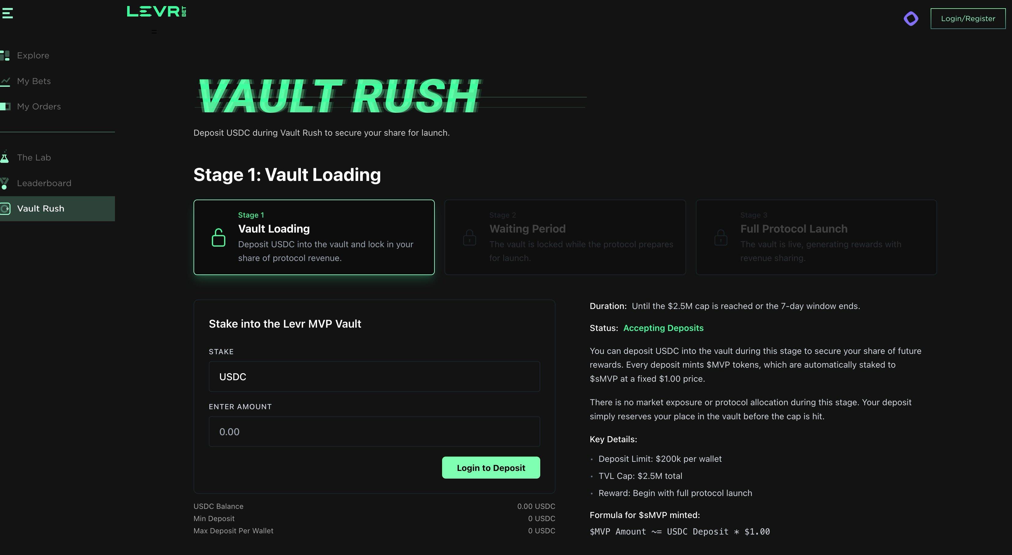 Levr.Bet 是体育板块的预测市场平台,允许玩家对比赛进行高额杠杆投注(例如,最高可将投注额放大 5 倍)。目前,它为用户提供了一个独特的 “成为庄家”的机会。 用户无需下注,而是可以存入资金来支持投注池,从而获得平台的部分手续费和利润分成,平台参与方法如下: