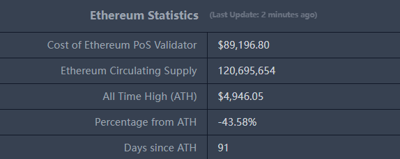 ETHUSD :现价2,783美元,历史最高价4,946.05美元,距最高价跌幅约43.58%