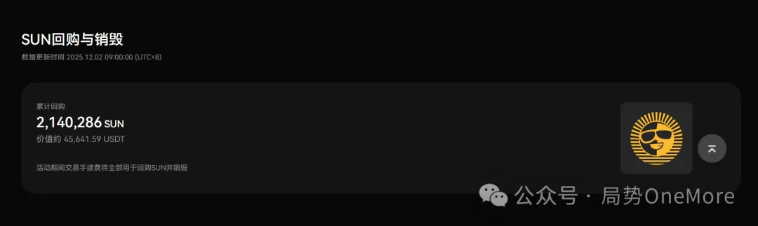 平台将这笔手续费收入集中起来,用于在公开市场买入SUN代币。