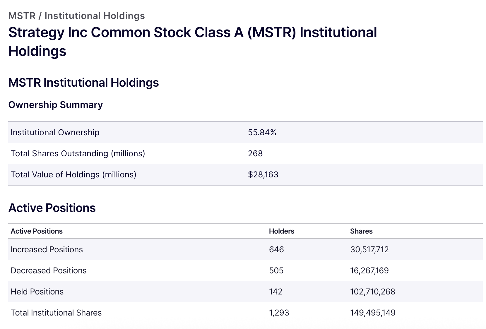 数据层面看 Strategy 股东变化:机构仍是持仓主力,增持力量远超减持力量