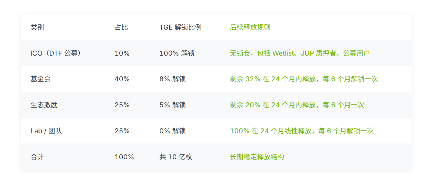 这种分配设计的好处很明显。一部分代币在 TGE 直接进入流通,保证早期交易的流动性。其余代币分散在两年内慢慢释放,减少抛压,同时为中长期生态建设提供动力。