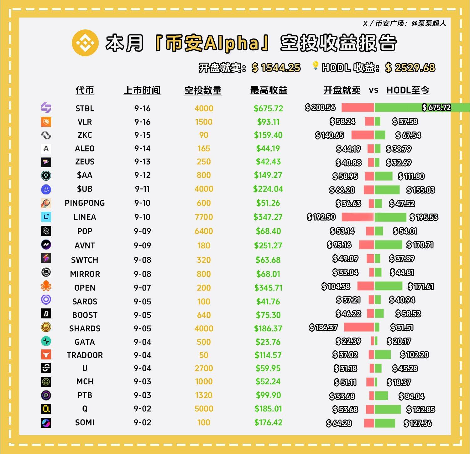 币安 Alpha 收益报告(9 月 17 日统计数据)