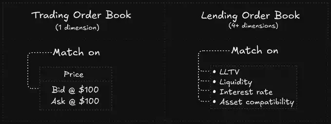 订单簿借贷 (CLOB): 实现了上述模式的解耦。风险定义权回归放贷人,通过订单簿引擎实现撮合。