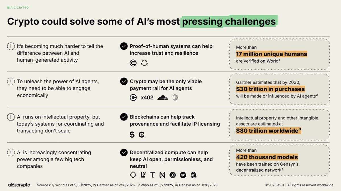 - 人工智能与加密(AI × Crypto)从炒作叙事转变为实际基础设施。