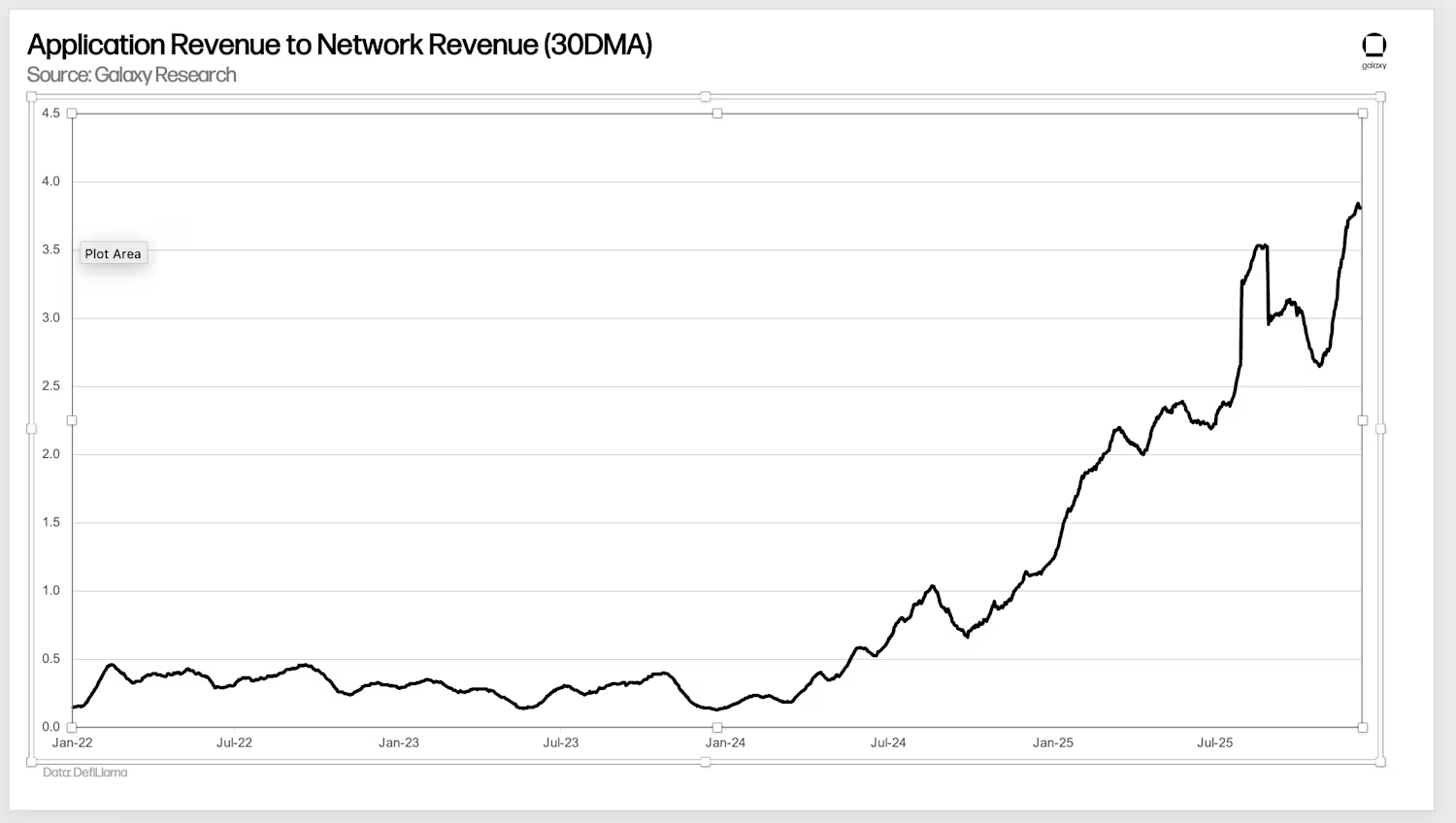 随着交易、DeFi、钱包和新兴消费者应用继续主导链上费用的产生,价值捕获正从底层转向应用层。同时,网络正在从结构上减少 MEV(矿工可提取价值)泄漏,并在 L1 和 L2 上追求费用压缩,导致基础设施层的收入基础缩小。这将加速应用层的价值捕获,使“胖应用理论”继续超越“胖协议理论”。