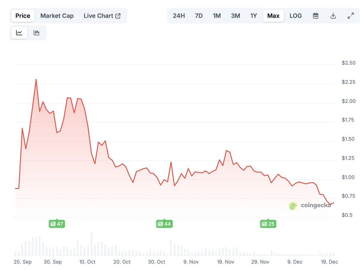 如果你一直热衷于交易 2025 年 TGE 的代币,至今结果会很明确:代币上线第一周内火爆,随后热度逐渐降低,最后默认接受“发行价就是最高点”。大多数新上线的代币表现不佳,甚至暴跌,因为市场始终将代币经济学和流动性视为基本面。