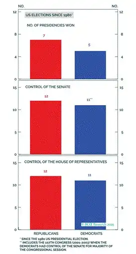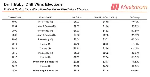 如果 GDP 和油价一起上涨,那赢的是蓝队民主党;如果 GDP 上涨、但油价横盘或下跌,那赢的就是红队共和党。