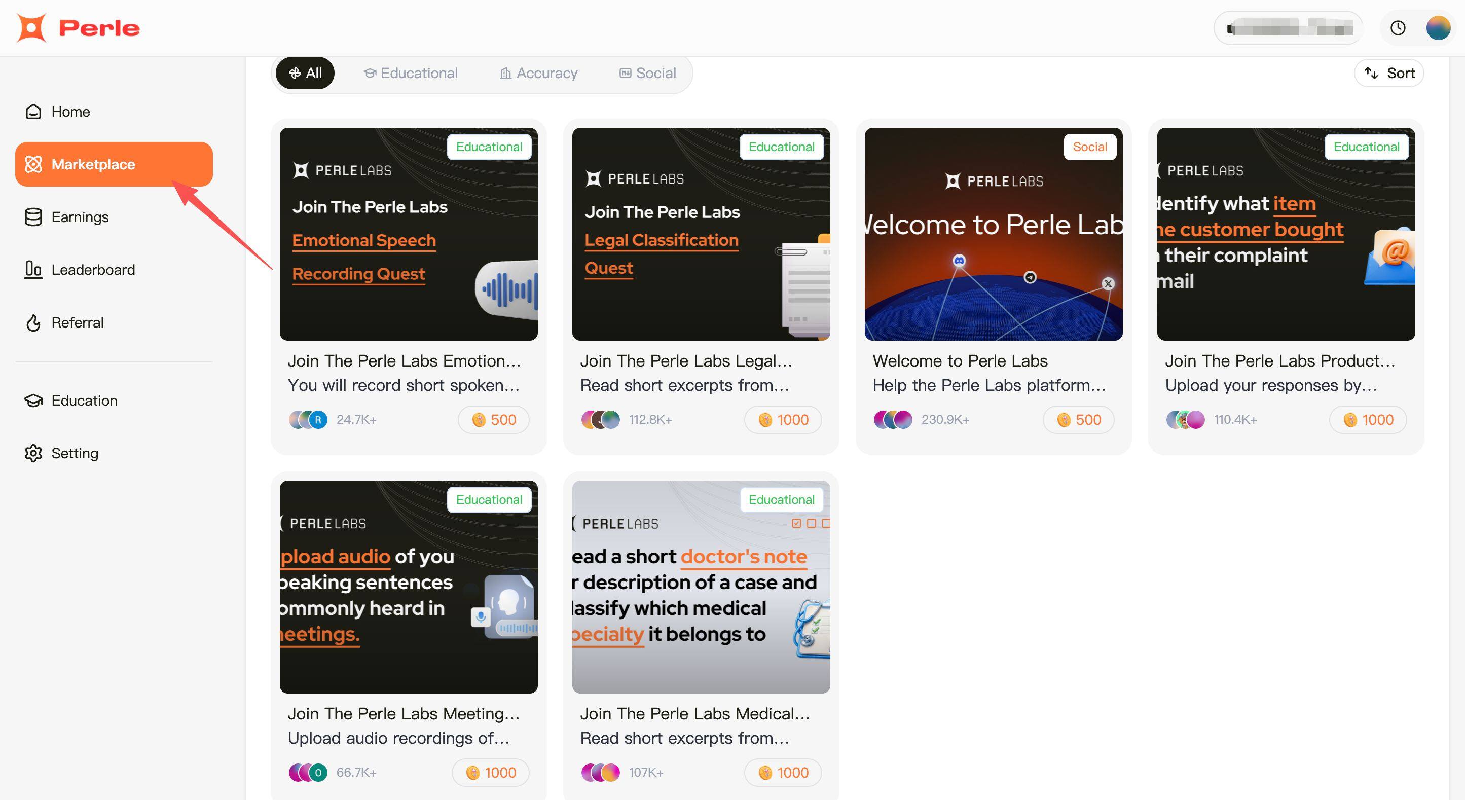 STEP 2. 点击“Marketplace”,会有 6 个任务可以参与。