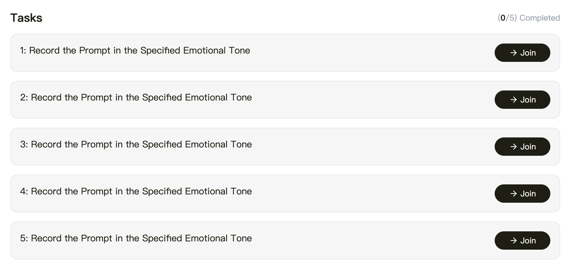 任务 6. Join The Perle Labs Emotional Speech Recording Quest,用指定语气进行录音(英文),共 5 题,每题 100 积分,共 500 积分。