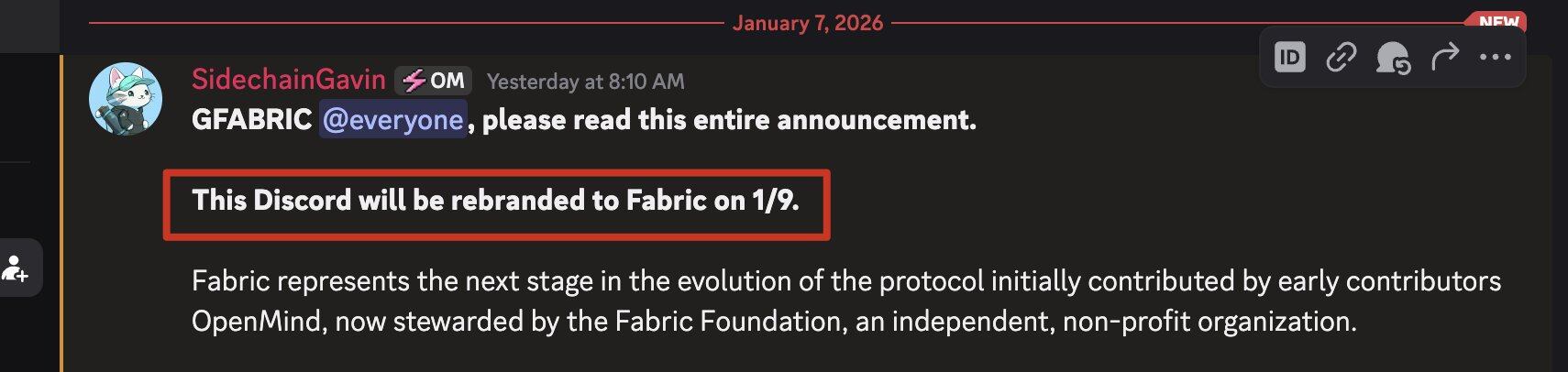 OpenMind 官方 Discord 更名为 Fabric