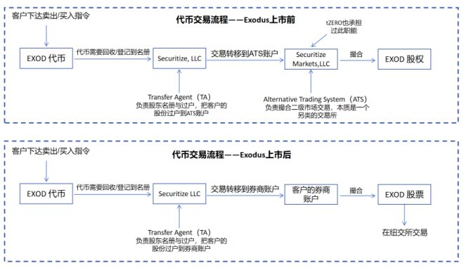 图 9:Exodus 上市前后代币交易流程示意图