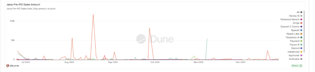 当前市场高度集中于 OpenAI、SpaceX 等超级独角兽,这本质上是一种流量逻辑:项目方借助高知名度标的公司,降低用户教育成本,完成冷启动。然而,真正的万亿级市场潜藏在更广泛的长尾私企之中。