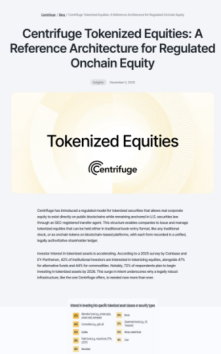 [5] Centrifuge. (2025, December 5). Centrifuge tokenized equities: A reference architecture for regulated onchain equity. Centrifuge. https://centrifuge.io/blog/centrifuge-tokenized-equities