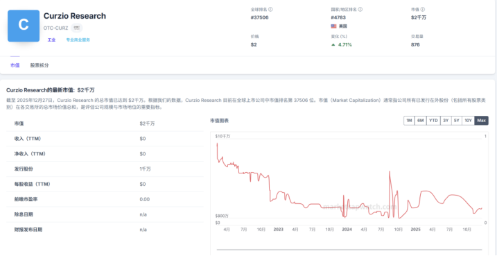 Curzio Research(CURZ)的案例说明:股权代币化后在 ATS 面向合格投资者交易,为不准备上市或无法上市的公司提供合规但有限的二级市场,以缓解股东退出压力。其交易表现也体现 ATS 薄型市场特征:发行后长期下行并在 2024 年初触底,随后高波动,呈现价差大、成交稀疏、价格发现效率偏低等特点(与公开市场的深度存在显著差异)。