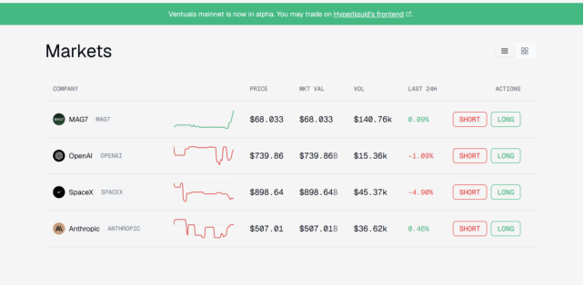 • 合成资产型(Republic、Ventuals):包括 Perps 类和债务票据类,不持有底层股权,仅提供估值敞口,以高杠杆满足投机需求,主要起流量引入作用。