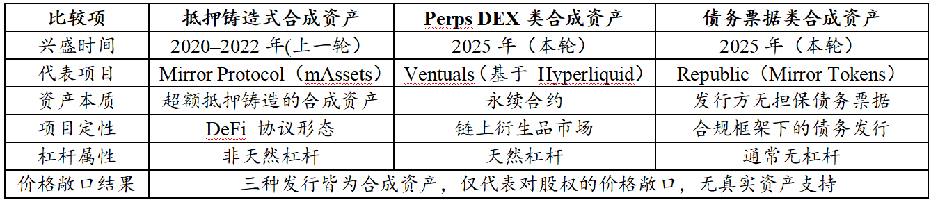 (1)合成资产型(衍生品):作为“流量入口”,利用高杠杆与低门槛优势捕捉投机性需求,完成早期的用户教育与流动性引入,但并不承载真实股权的资产化职能。