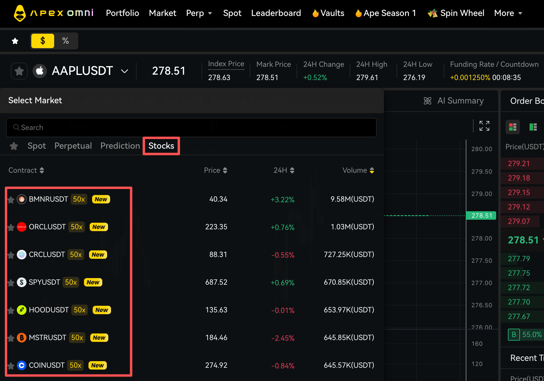 Figure 7. ApeX stock perps. Source: https://omni.apex.exchange/trade/AAPLUSDT