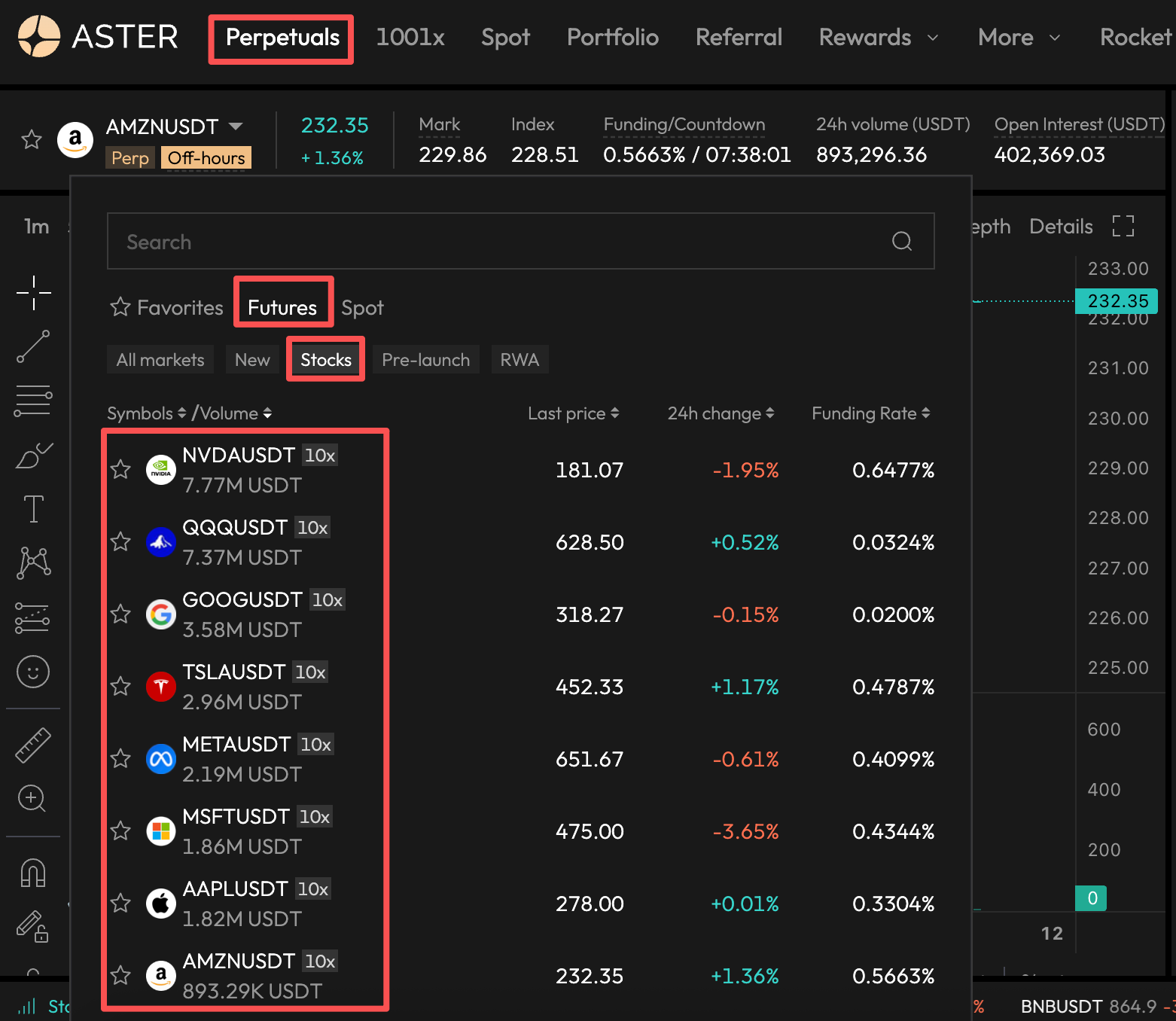目前,股票永续合约的主要市场仍然集中在头部 Perp DEX(如 Hyperliquid、Aster、Lighter)之中。尽管部分中心化交易所(如 Bitget)已经开始尝试推出 Stock Futures 等相关产品,但这些产品本质上多基于代币化股票构建的指数型衍生品,在资产结构、定价机制与去中心化股票永续仍存在差异。不过,从用户功能和交易体验来看,这类产品已经在一定程度上接近股票永续的风险敞口形态。