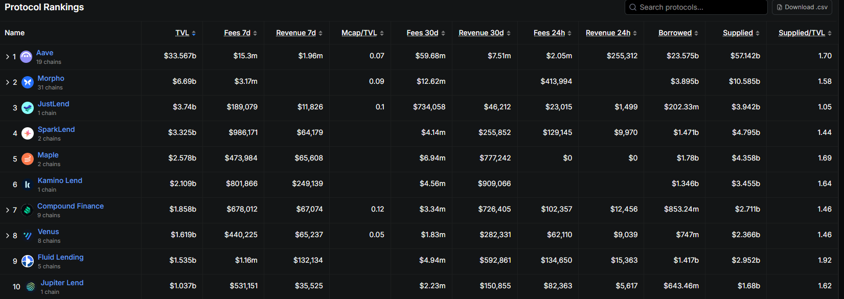 Source:defillama ,https://defillama.com/protocols/lending